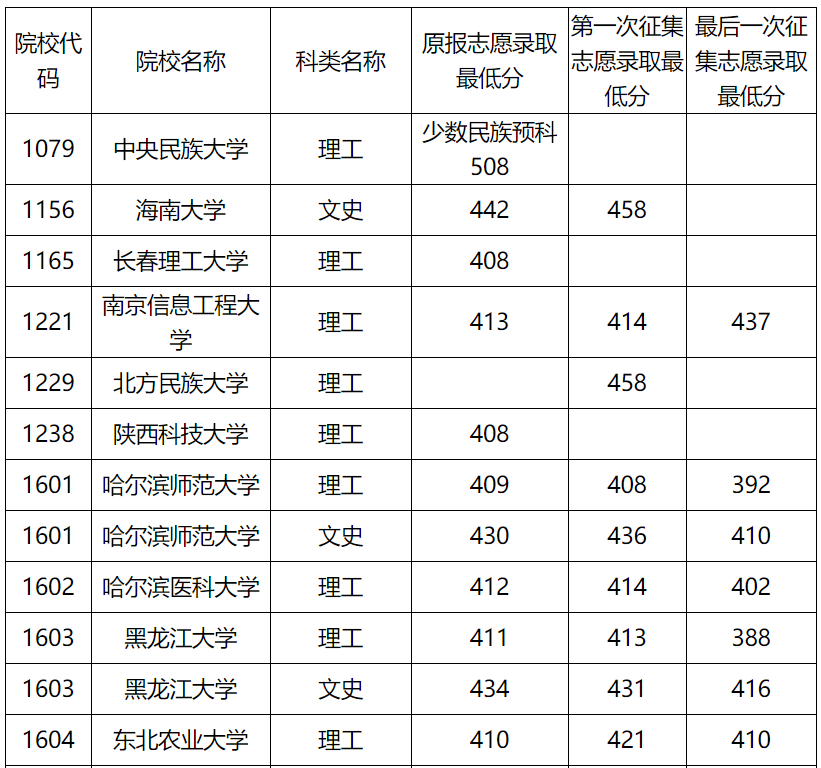 2023年普通高校本科第一批B段录取结束院校名单(三)(二)(一)